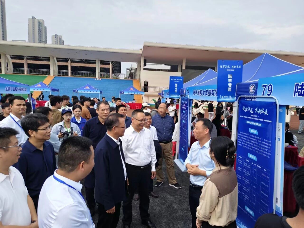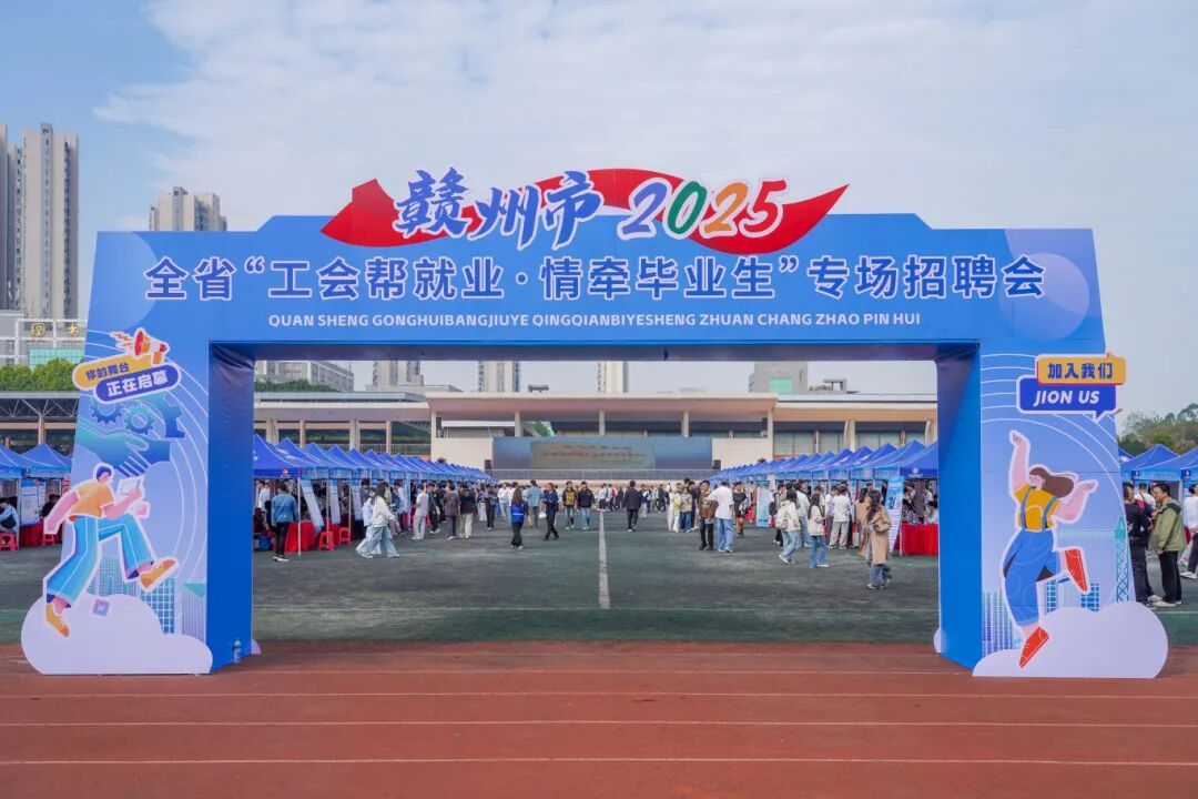 10月30日,由江西省总工会主办,赣州市总工会、赣州市人力资源和社会保障局、赣州市教育局、赣南科技学院承办,赣州市人才集团有限公司协办的全省“工会帮就业·情牵毕业生”专场招聘会暨“就”在赣州“虔城”似锦——赣南科技学院2026届毕业生秋季就业洽谈会在学校田径场顺利举办。本次招聘会吸引了来自全国各地的优质企业327家,广东汕尾、浙江遂昌、福建长汀等地人社部门组团来校招聘,提供就业岗位1190个,计划招聘(岗位需求人数)12000余人,招聘范围涵盖资源矿业、机械电气、材料冶金、电子信息、经济管理、文法艺术等多个领域,与学校学科专业设置高度契合。