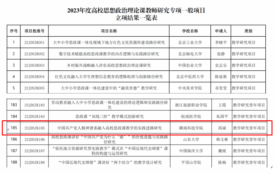 马克思主义学院以8个教研室为支撑,全覆盖承担全校思政课、公共文艺课及大学生心理健康教育课程,以“一师一课”为核心,常态化开展“一师一课”“一课多师”“师生同台”“双师同堂”“专题+艺术”“家门口实践基地”等教学改革,让思政课堂活起来、实起来。科研领域成果丰硕,教师近年来主持省部级以上科研项目22项、市级项目17项,出版专著2部,发表CSSCI文章和省级党报理论文章等多篇,斩获江西省社会科学优秀成果奖、高校思想政治工作优秀论文等多项奖励,形成“教学促科研、科研反哺教学”的良性循环。