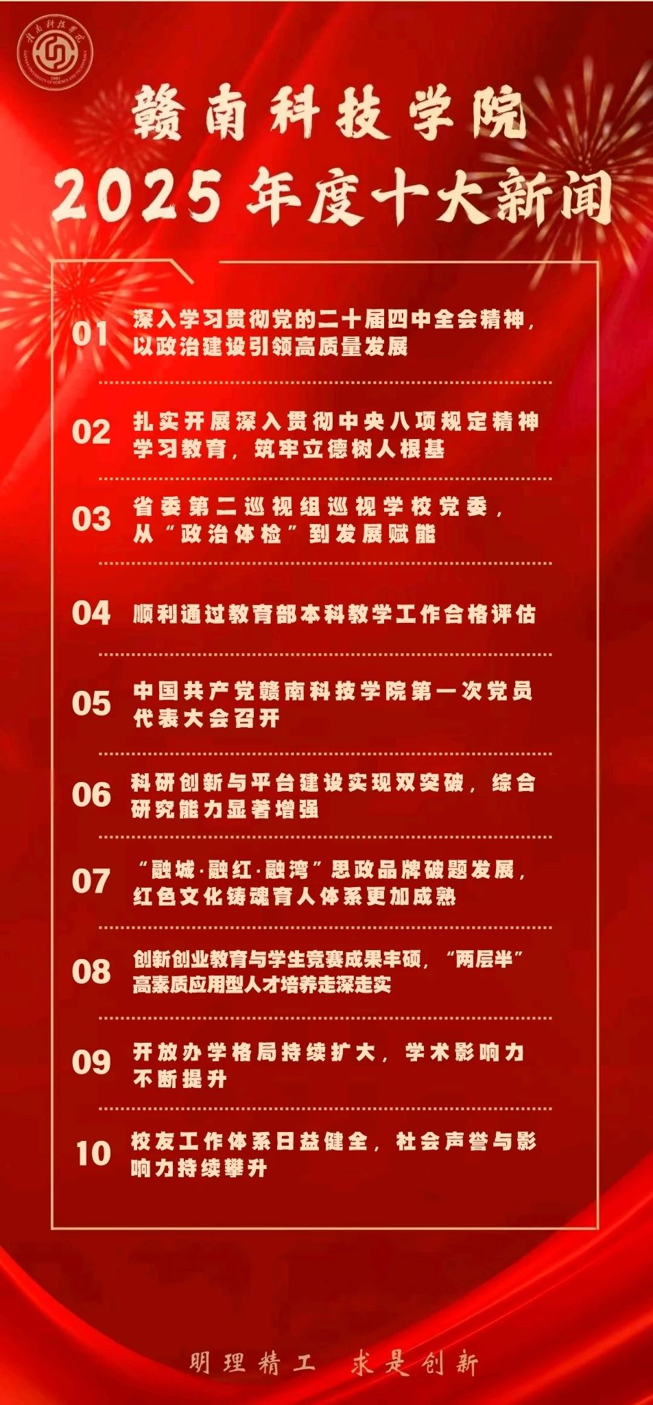 2025年的发展成就,是全体赣科人智慧和汗水的结晶,也离不开社会各界的关心与支持。展望未来,学校将始终不忘立德树人初心,牢记为党育人、为国育才使命,凝心聚力、踔厉奋发,奋力建设全国知名、省内一流、特色鲜明的高水平应用型大学,为推进革命老区高质量发展、谱写中国式现代化江西篇章贡献力量!