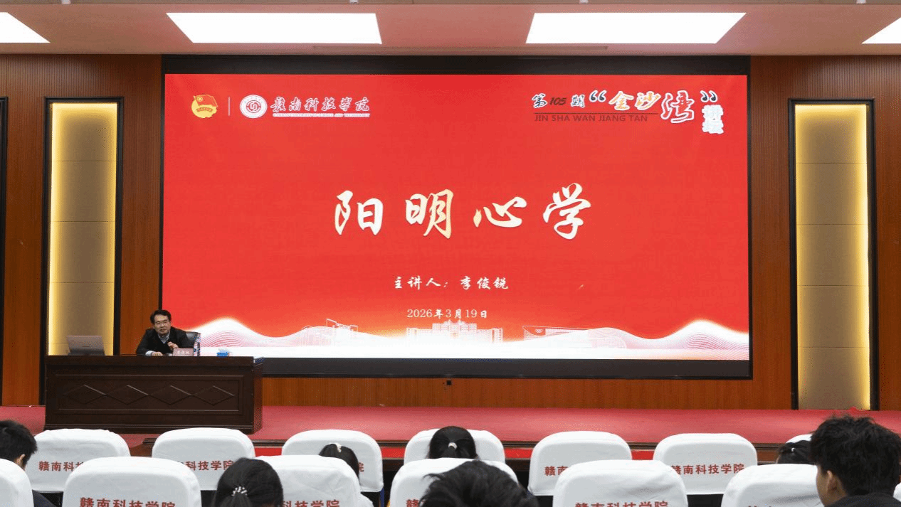 本网讯:3月19日晚,我校第105期“金沙湾”讲坛在图书馆学术报告厅举行。本次讲坛特邀赣州市文广旅局党组书记、局长李俊锐作《阳明心学》专题讲座。学校党委委员、副校长何锦龙会见李俊锐,并代表学校表示欢迎与感谢。现场300余名师生齐聚一堂,共沐先贤思想光辉,共探青年成长路径。