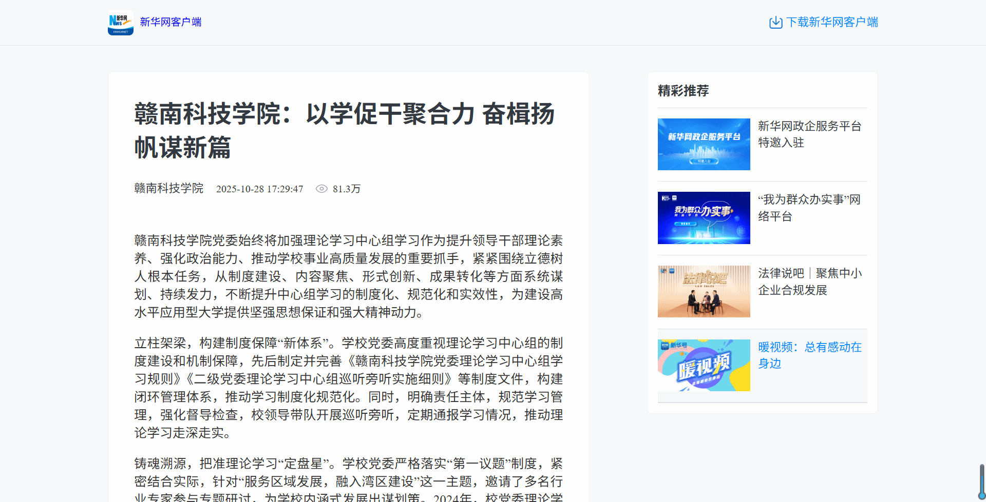 赣南科技学院党委始终将加强理论学习中心组学习作为提升领导干部理论素养、强化政治能力、推动学校事业高质量发展的重要抓手,紧紧围绕立德树人根本任务,从制度建设、内容聚焦、形式创新、成果转化等方面系统谋划、持续发力,不断提升中心组学习的制度化、规范化和实效性,为建设高水平应用型大学提供坚强思想保证和强大精神动力。