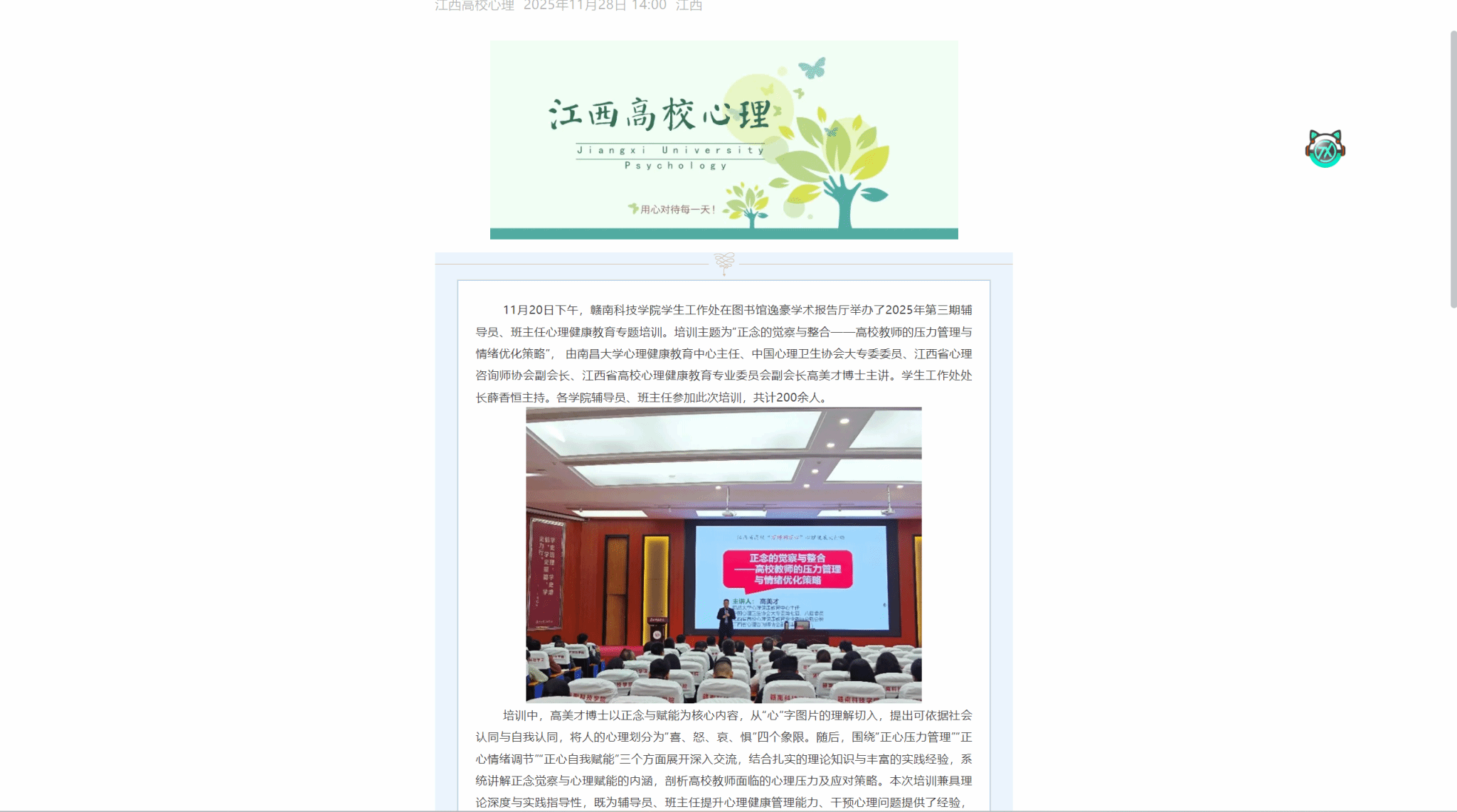 还有教师反馈:本次培训不仅收获了科学的压力管理方法,更感受到学校对教师心理健康的重视,显著增强了职业幸福感和归属感。