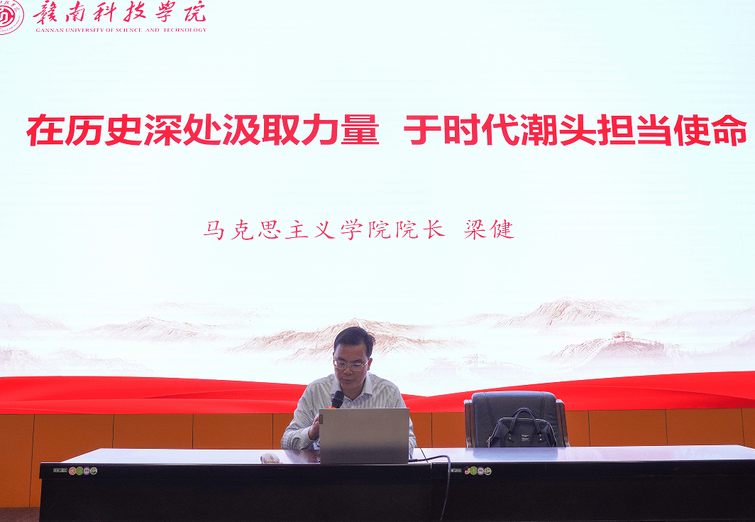 在现场教学环节,马克思主义学院院长梁健以“在历史的深处汲取力量 于时代的潮头担当使命”为题,为同学们上了一堂精彩的思政课,要求同学们在深化认知中坚定理想信念,在传承精神中砥砺意志品格,在服务奉献中实现人生价值。