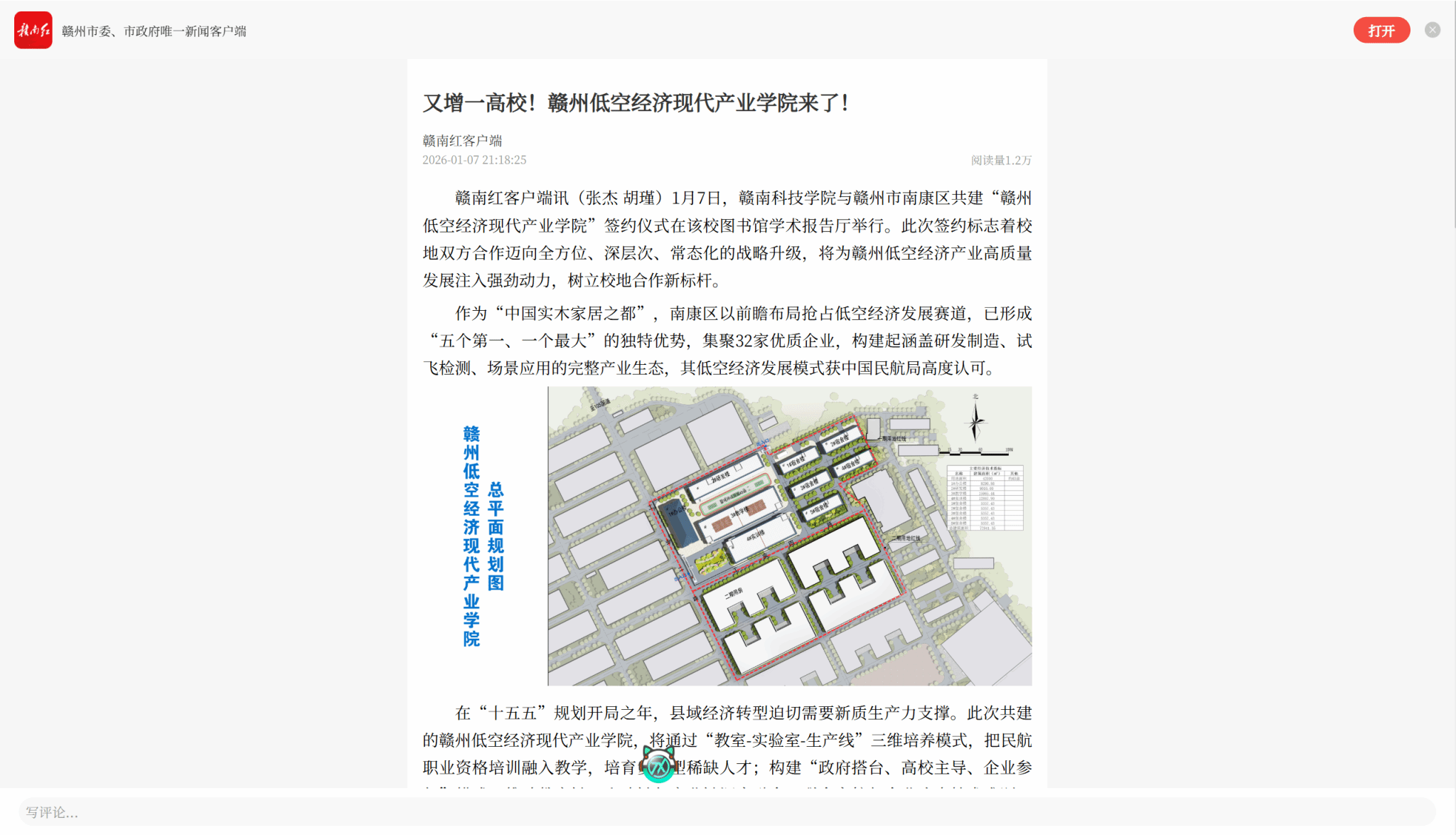 据了解,赣州低空经济现代产业学院位于赣州低空经济产业园,是南康区政府与赣南科技学院共建的全日制本科二级学院,拟围绕无人机研发制造、适航审定服务、应用场景拓展三大核心领域,建设飞行器运维工程,低空技术及工程、飞行器制造工程、适航技术与管理、电子信息(无人机方向)等低空经济类学科专业,兼顾CAAC执照、适航审定员等职业资格培训,适时开展成人继续教育、专业学位研究生教育及行政事业单位短期培训等补充办学。学院拟采用校地深度融合的嵌入式培养模式,打通“教室-实验室-生产线”三维培养空间;办学初期选派高年级学生入驻教学,成熟后实现本科新生“入学即入园、毕业即就业”的四年制培养。