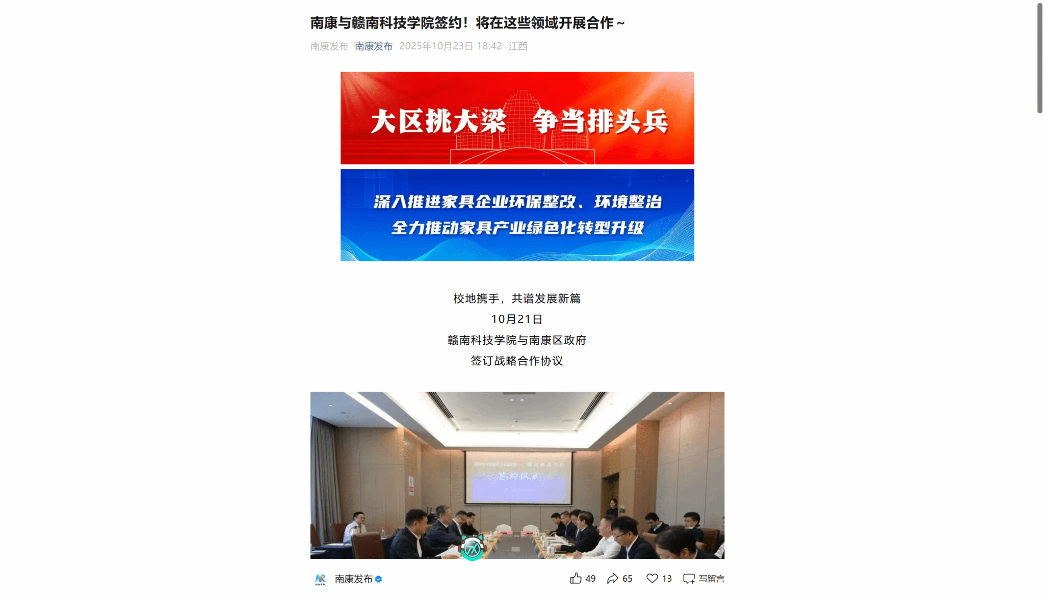 校地携手,共谱发展新篇,10月21日,赣南科技学院与南康区政府签订战略合作协议