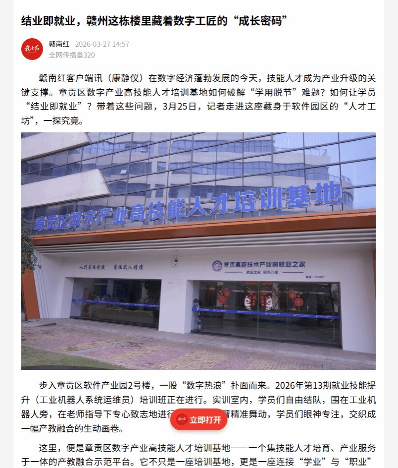 这里,便是章贡区数字产业高技能人才培训基地——一个集技能人才培育、产业服务于一体的产教融合示范平台。它不只是一座培训基地,更是一座连接“学业”与“职业”的桥梁。