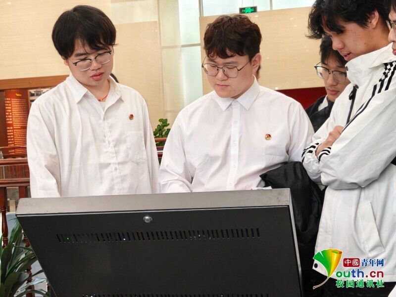 图为学生通过电子展屏追溯革命先烈史料。杨琳萍 供图