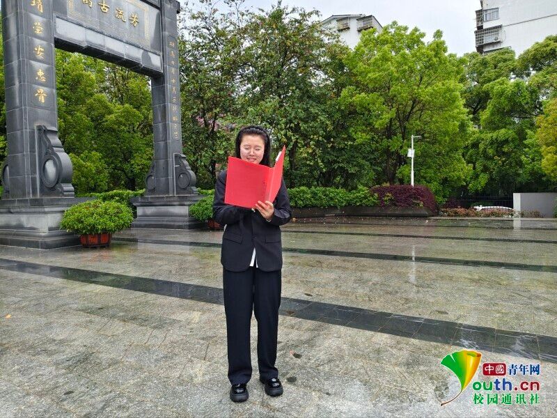 图为全体师生肃立聆听优秀团员代表刘心宁发言。赵楠 供图