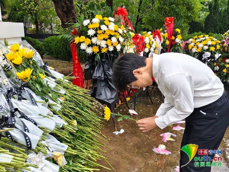 图为学生鞠躬向革命烈士献花。赵楠 供图