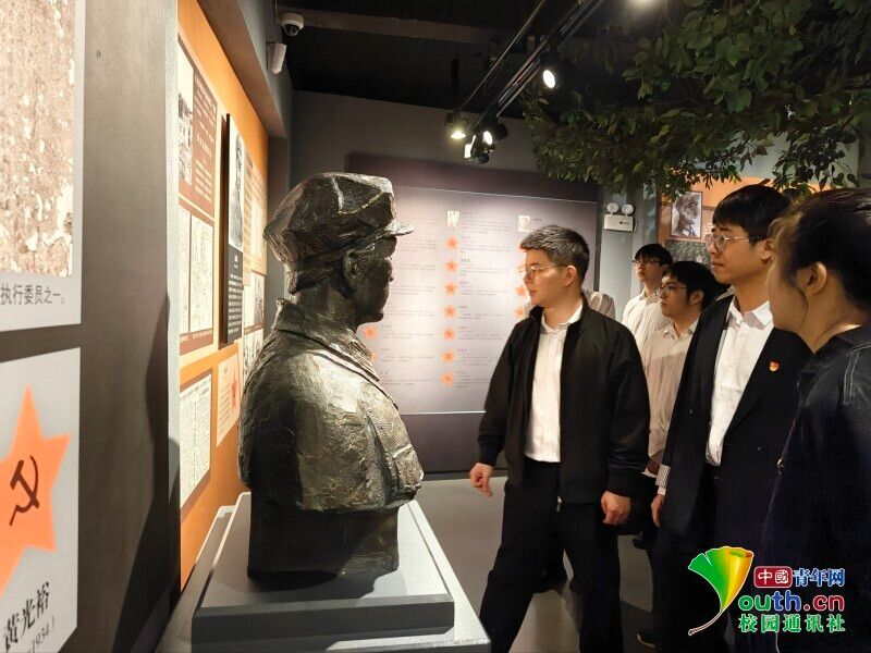 图为师生共同参观革命先辈雕像。杨琳萍 供图