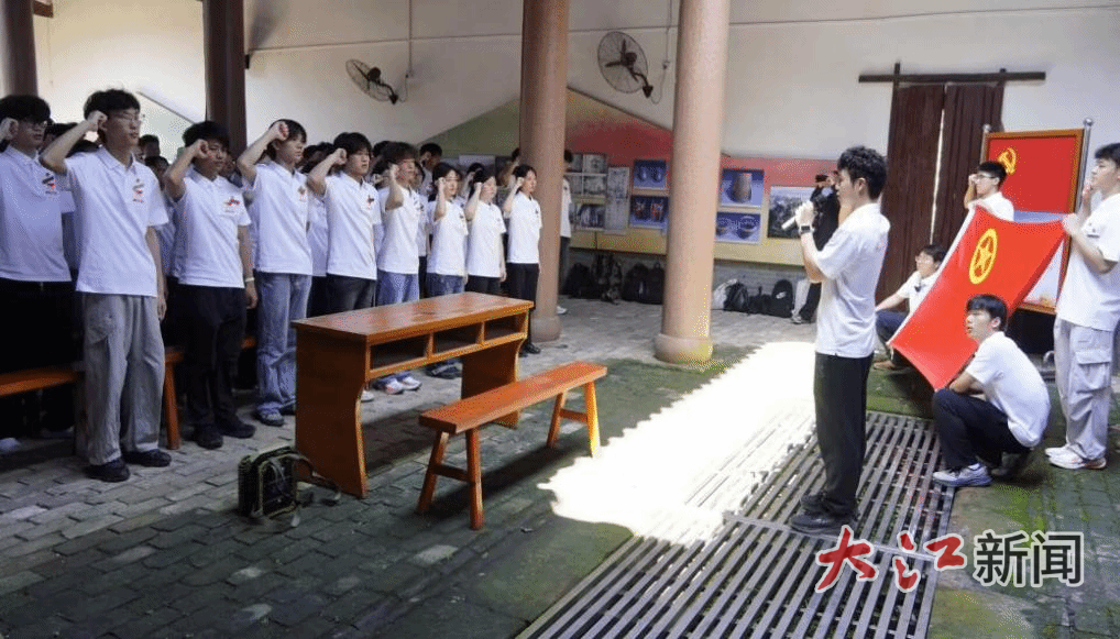 师生们齐聚学校教学楼前举行出征仪式,齐唱国歌、面向国旗庄严宣誓,齐声诵读《七律·长征》。仪式结束后,大家乘车前往于都县祁禄山长征小道,沿着当年红军行军的路线徒步前行。一行人依次走过金沙桥、思源井、登贤桥,穿行于青山翠谷之间,来到登贤县苏维埃政府旧址,认真聆听红色革命故事,追忆那段烽火峥嵘的革命岁月。随后,全体学员面对团旗庄严宣誓,重温入团誓词。铿锵誓言在山谷间久久回荡,既是对革命先烈的深情告慰,更是新时代青年坚定理想信念,听党话、跟党走的宣言。