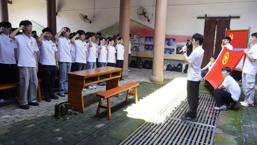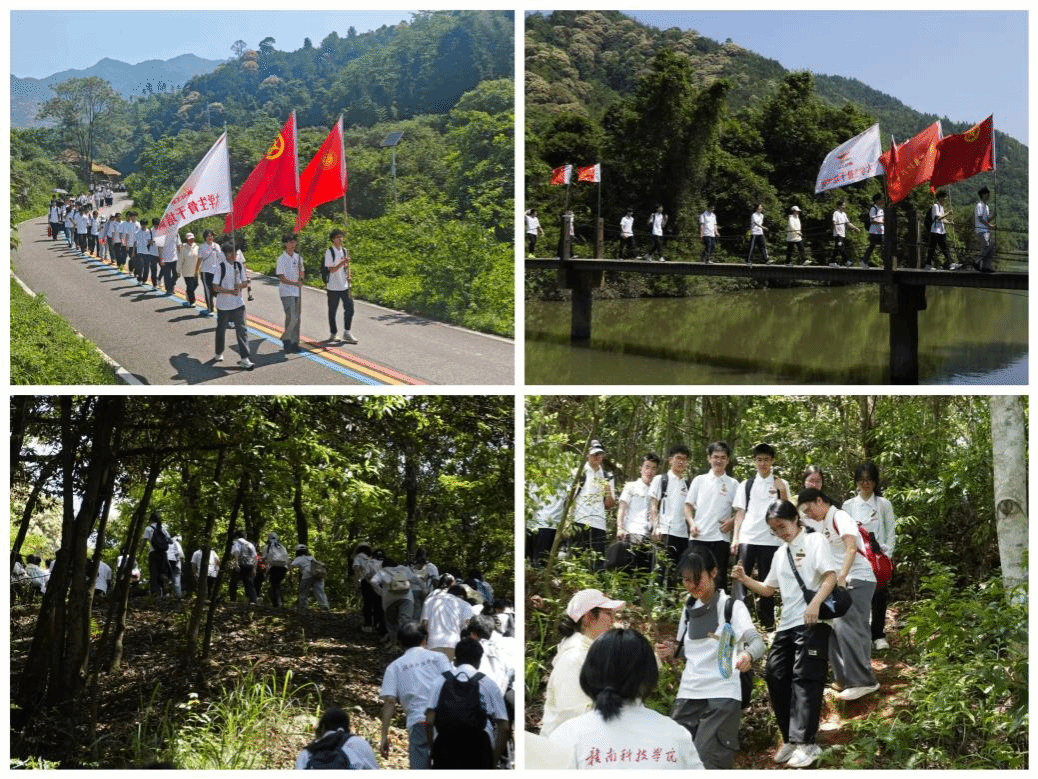 师生们齐聚学校教学楼前举行出征仪式,面向国旗庄严宣誓,齐声诵读《七律•长征》。仪式结束后,大家乘车前往于都县祁禄山长征小道,沿着当年红军行军的路线徒步前行。一行人依次走过金沙桥、思源井、登贤桥,穿行于青山翠谷之间,来到登贤县苏维埃政府旧址,认真聆听红色革命故事,追忆峥嵘烽火岁月。随后,全体学员面对团旗庄严宣誓,重温入团誓词。铿锵誓言在山谷间久久回荡,既是对革命先烈的深情告慰,更是新时代青年听党话、跟党走的政治宣言。