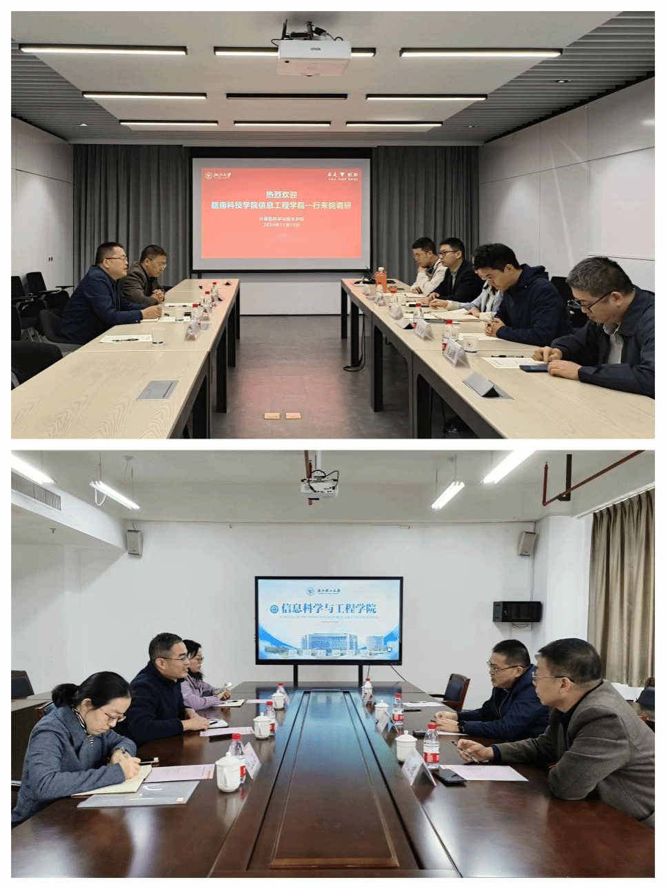 本网讯:11月18日,信息工程学院副院长胡健、党委副书记邓小鸿赴浙江大学计算机学院、浙江理工大学信息科学与工程学院调研交流。