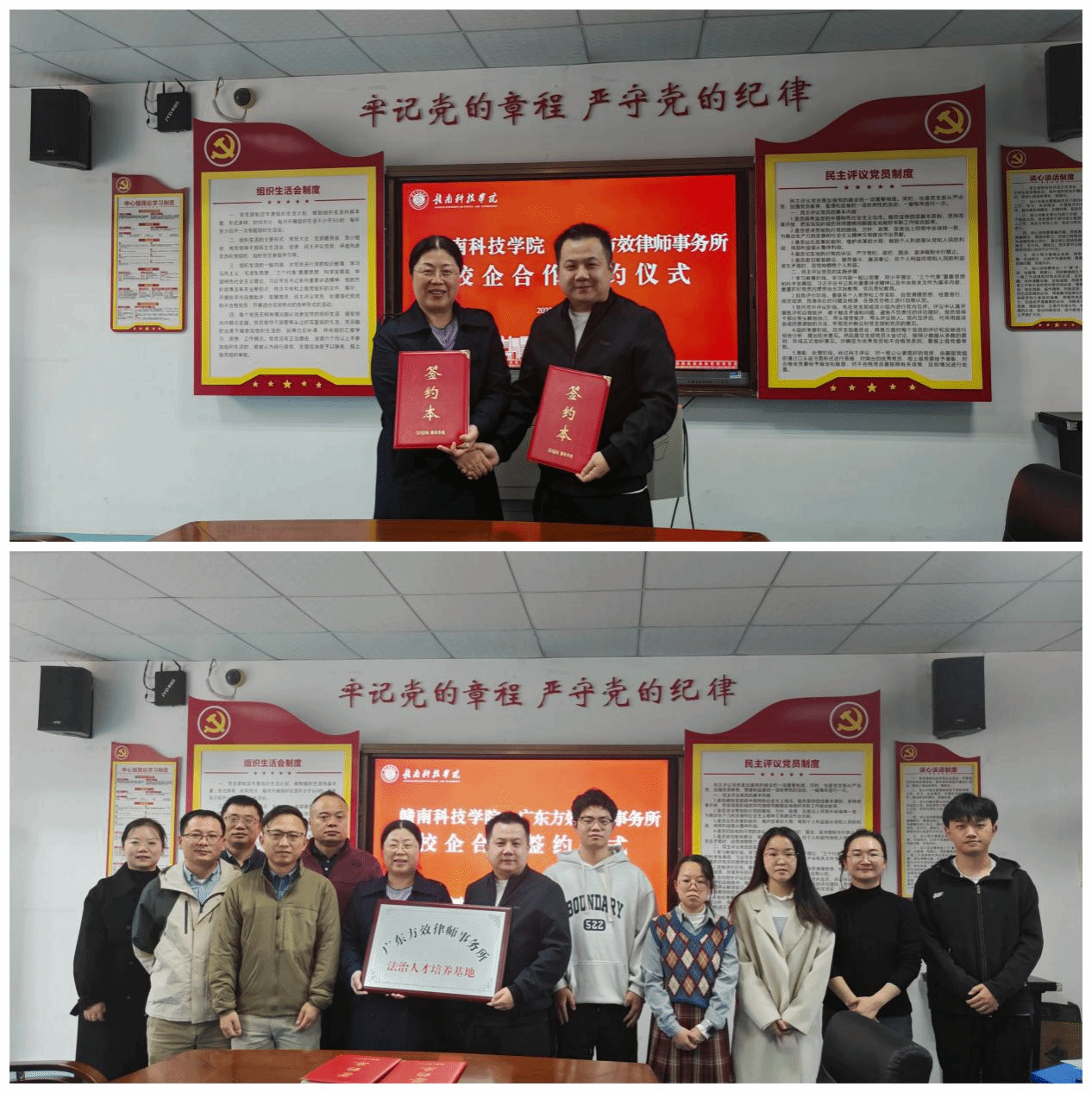 会上,双方签署了《赣南科技学院 广东方效律师事务所合作共建协议》,并进行了“广东方效律师事务所法治人才培养基地”与“赣南科技学院实践教学基地”揭牌仪式。