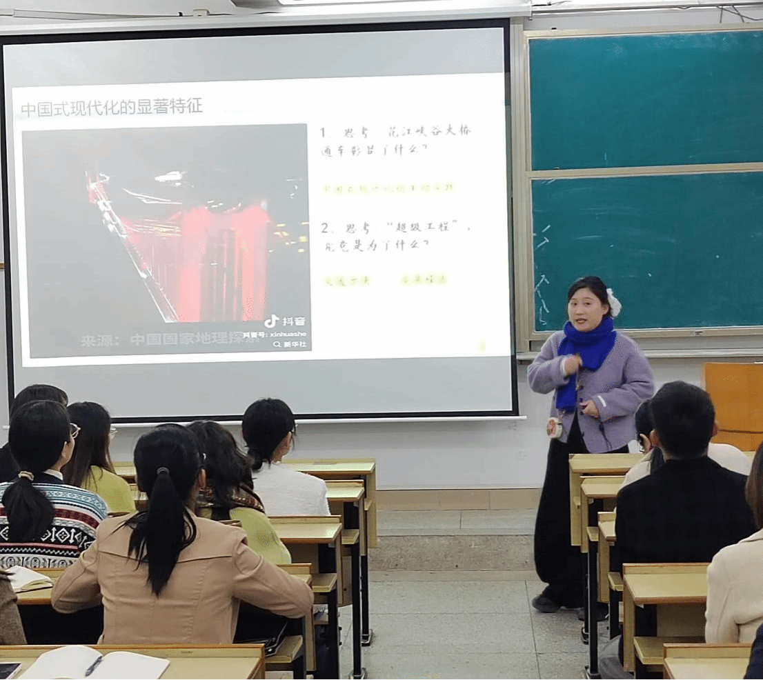 随后,两位主讲嘉宾依次展开分享。邓小英教授结合多年思政课讲授经验,从教学的基本规范、备课、课堂教学基本技能提升等方面,分享了如何激发学生的课堂参与度,并通过实际教学案例,直观展示了优质课堂课程思政的构建方法。许婷婷老师则以2024年获江西省高校思政课和红色文化课程教学比赛《红色文化》本科组一等奖的经验为切入点,聚焦课程思政融入与特色教学模式创新,讲解了如何通过挖掘教学内容的趣味性与思想性,让课堂更具吸引力。讲座期间,还穿插了示范课展示环节,两位嘉宾现场演示教学片段,让参会教师更直观地学习优秀的教学方法。