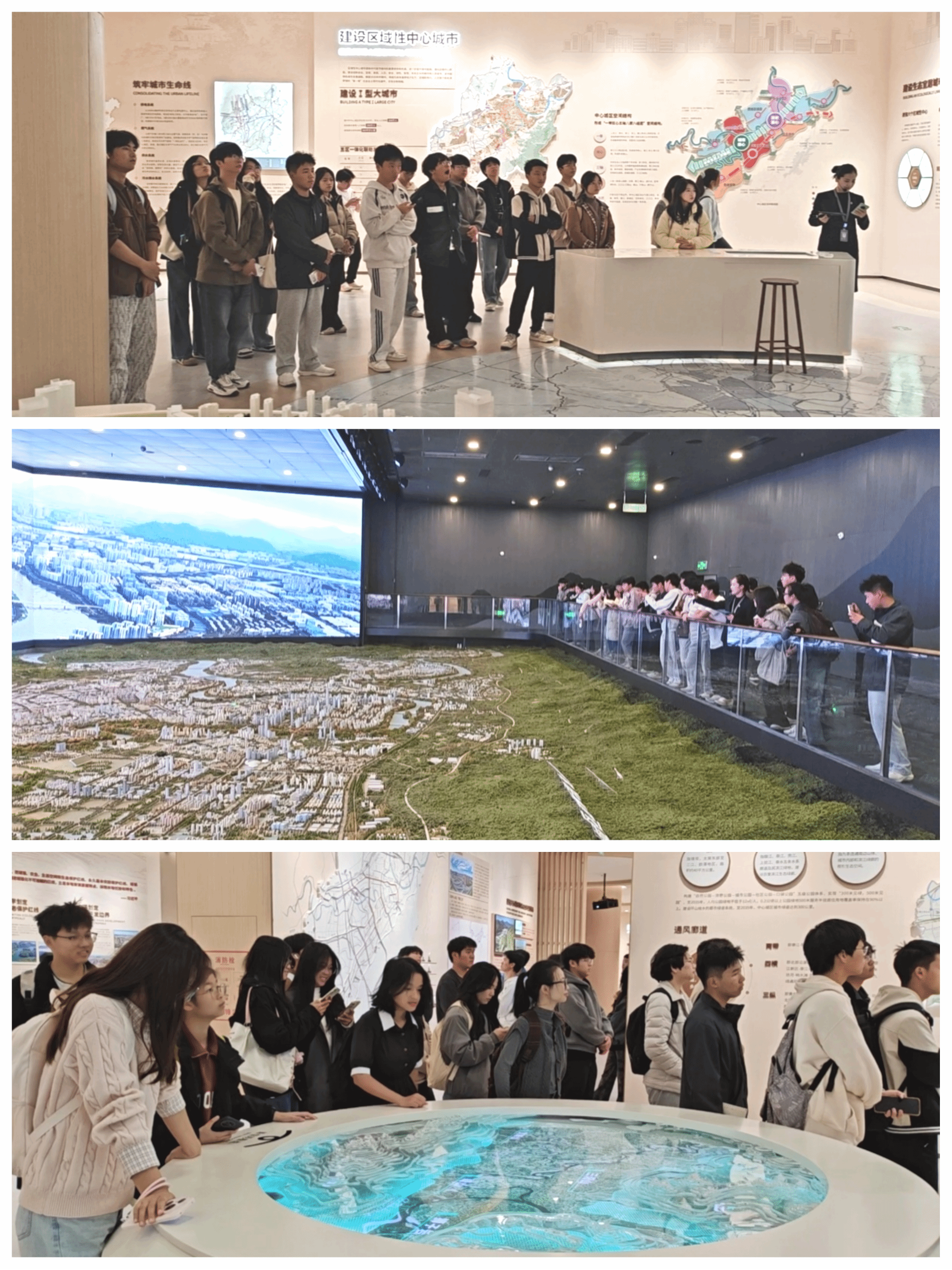 活动伊始,在讲解员的引导下,学生有序参观该馆的赣州印象、蓝图擘画、飞跃赣州等展厅,声光电沙盘模型生动呈现赣州“三区三线”划定成果,动态影像再现城市发展变迁,实物陈列见证产业崛起历程。从“红色故都”的革命底蕴到“客家摇篮”的文化根脉,同学们系统了解赣州城市名片的丰富内涵,直观感受从历史文化名城到省域副中心城市的蝶变,深切体会新能源、脐橙特色农业等产业的创新突破。