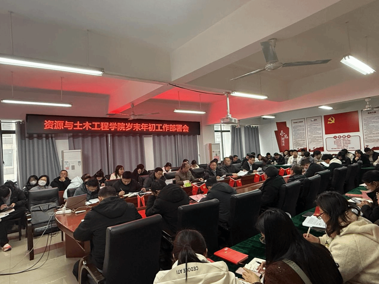 本网讯:1月20日下午,资源与土木工程学院在逸夫楼A505会议室召开岁末年初工作部署会,切实保障假期师生安全与学院各项工作平稳推进。学院领导班子全体成员、全体教职工参加会议。