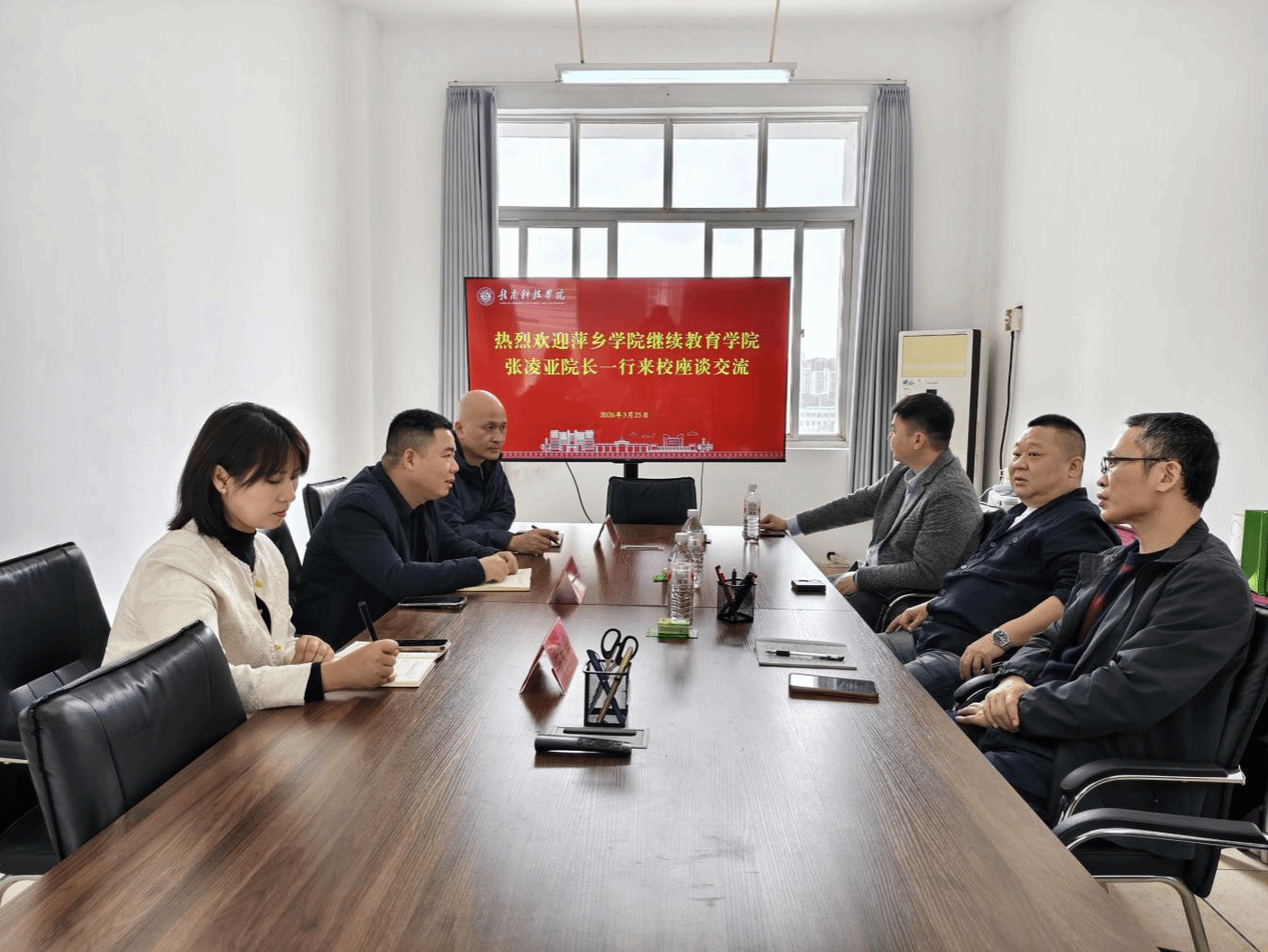 本网讯:3月25日上午,萍乡学院继续教育学院副院长张凌亚一行来校座谈交流。我校招生就业处处长、继续教育学院负责人杨智勇,副院长罗军以及相关工作人员参加座谈会。