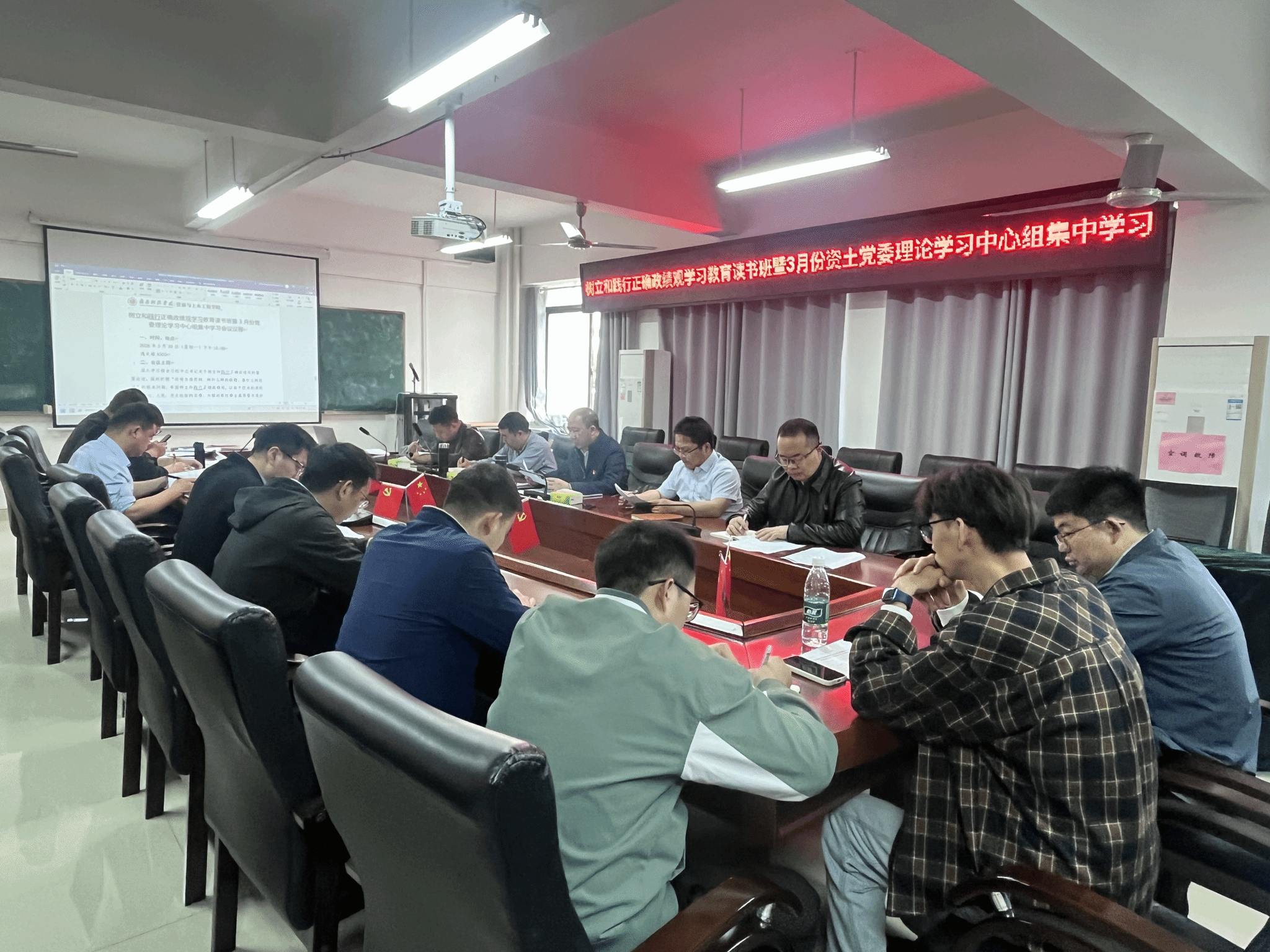 本网讯:3月30日,资源与土木工程学院在逸夫楼A505会议室举办树立和践行正确政绩观学习教育读书班暨3月份党委理论学习中心组集体学习会。学院党委书记刘俊峰主持会议并讲话。他强调,要深入学习贯彻习近平总书记关于树立和践行正确政绩观的重要论述,牢牢把握“立党为公、为民造福、科学决策、真抓实干”的总要求,认真有效开展学习教育,奋力谱写“十五五”发展新篇章。学院领导班子成员结合树立和践行正确政绩观学习教育要求及各自工作实际,深入研讨交流。
