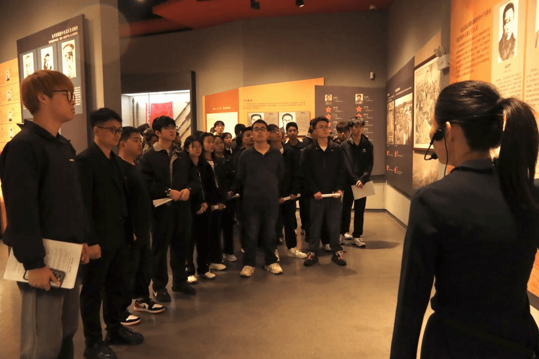 抵达纪念馆后,师生跟随讲解员有序参观。馆内历史图片与珍贵文物展现了赣南苏区革命历程与先烈英勇事迹,师生驻足聆听,在重温红色历史中感悟苏区精神。随后,祭扫仪式在烈士英名墙前举行。全体师生肃立致意,国旗护卫队敬献花篮,智能制造与材料工程学院党委委员、团委书记肖志华,智能制造与材料工程学院教工第二党支部书记冯新刚上前仔细整理挽联。伴着《献花曲》,全场默哀三分钟,行三鞠躬礼。之后,师生依次献花、绕墙瞻仰,缅怀先烈。