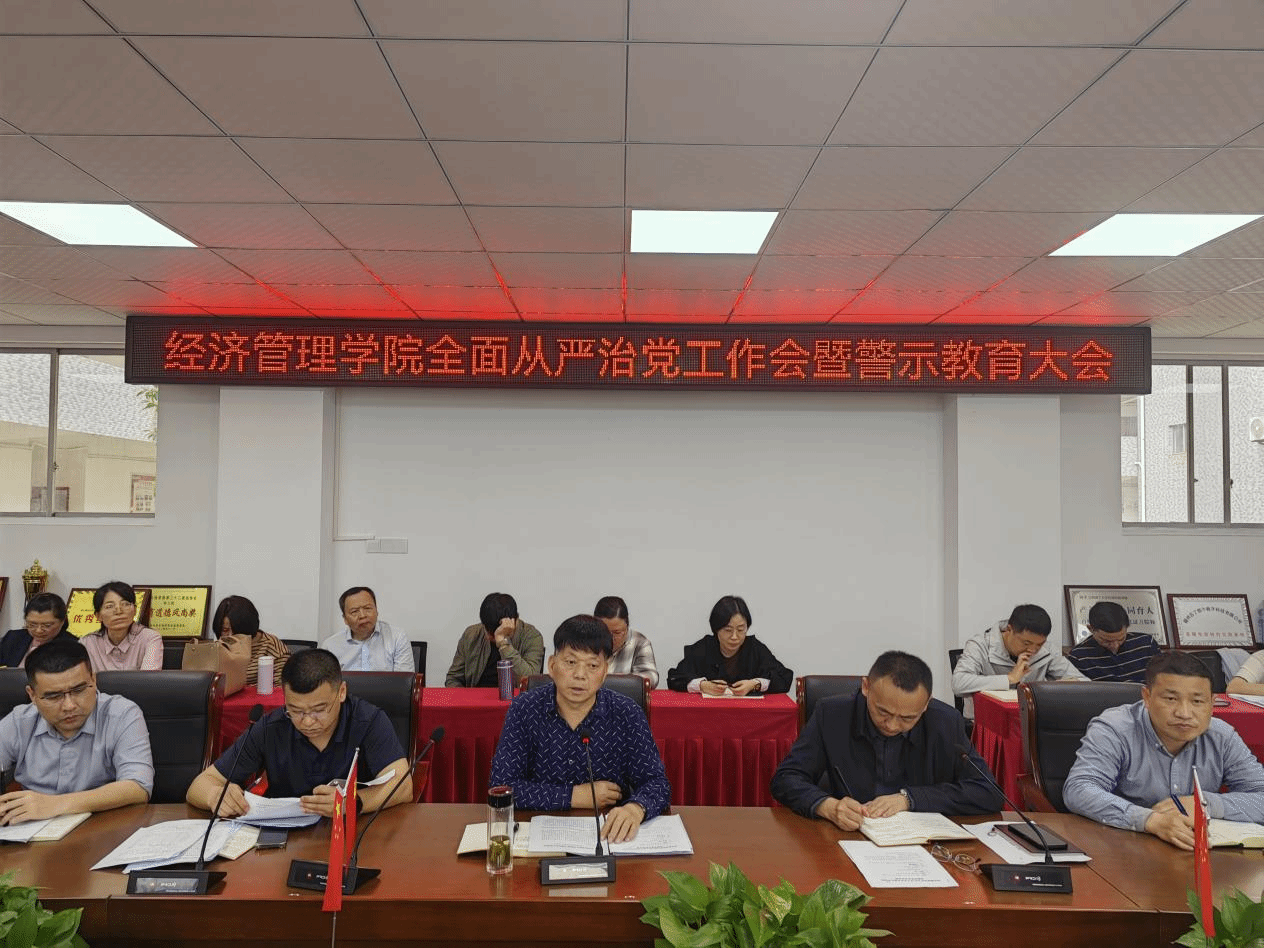 本网讯:4月7日下午,经济管理学院在新民楼305会议室召开2026年全面从严治党工作会暨警示教育大会,传达学习二十届中央纪委五次全会、省纪委十五届六次全会精神、教育部2026年教育系统全面从严治党工作视频会议精神、学校2026年全面从严治党工作会暨警示教育大会精神。学院党委书记肖永鸿主持会议并讲话,学院领导班子成员和全体教师参加会议。