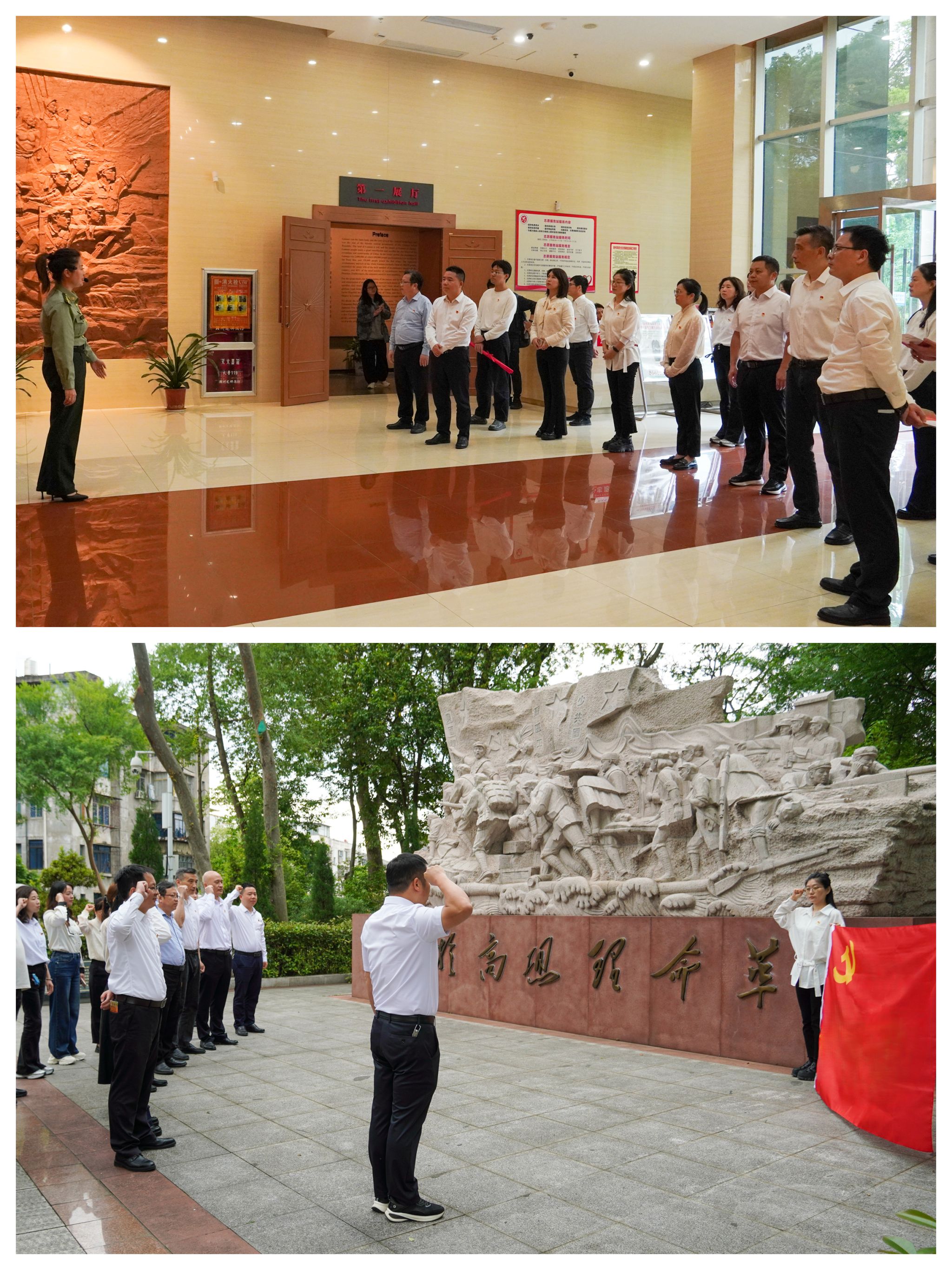 参观结束后,全体党员前往烈士纪念园,在“革命理想大于天”雕塑前重温入党誓词,铭记初心使命。庄重的宣誓不仅表达了对革命先烈的深切缅怀,更强化了全体党员的责任与担当,凝聚起干事创业的奋进力量。