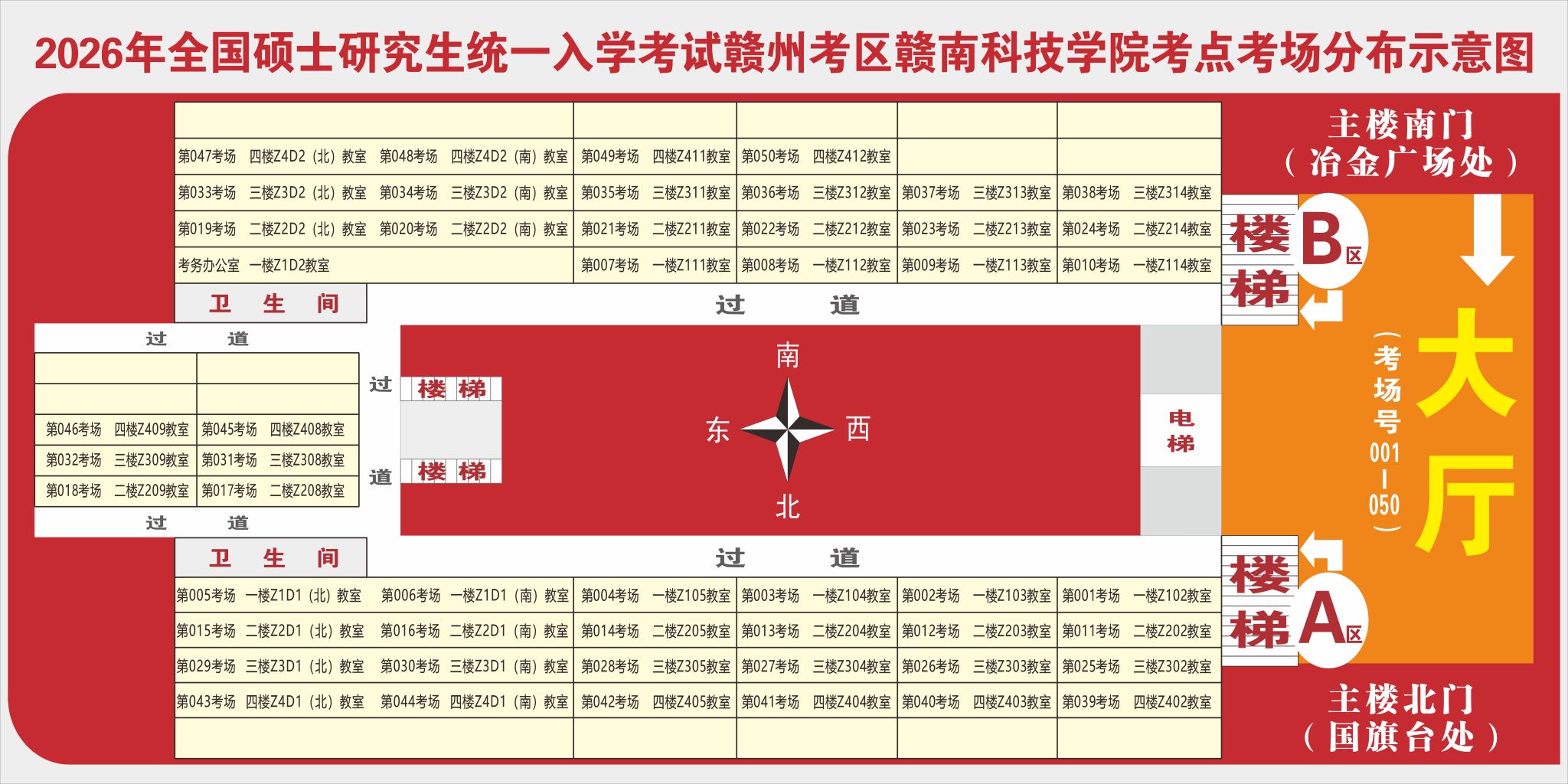 1.我校考点位于赣州市章贡区客家大道156号,考场位置在教学主楼。考生可于12月19日下午16:30-17:30,凭准考证、身份证入校熟悉考点环境和考场分布,但不可进入考场!