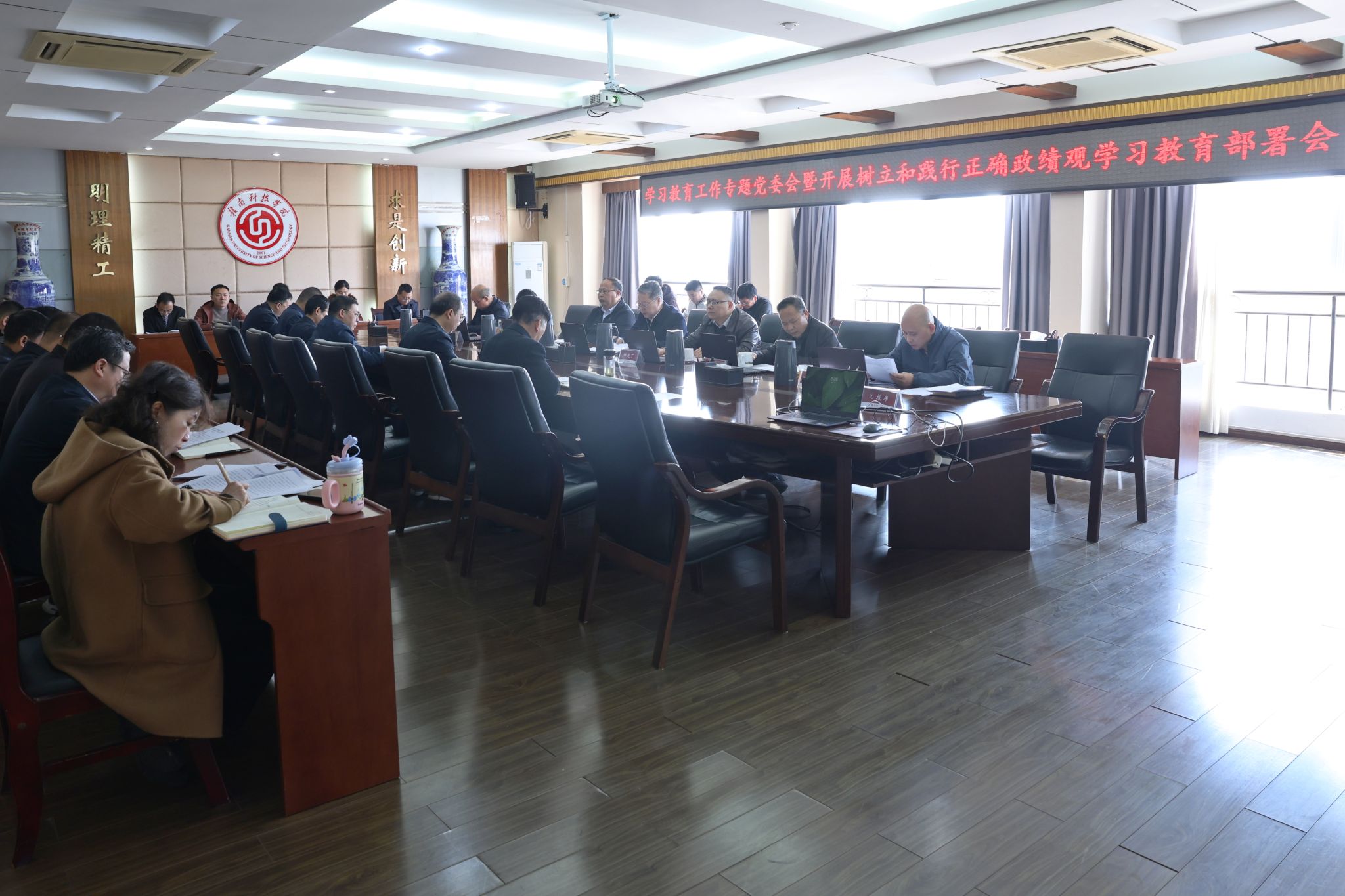 会议指出,开展树立和践行正确政绩观学习教育,是以习近平同志为核心的党中央作出的重大决策部署,是今年党的建设的重要任务。对于正处于申硕攻坚关键期的学校而言,既是必须完成的重大政治任务,更是推动办学层次提升、实现高质量发展的内在迫切需求。各级党组织和全体党员要切实把思想和行动统一到习近平总书记重要指示精神和党中央、省委、市委决策部署上来,以高度的政治自觉、思想自觉和行动自觉开展好学习教育。
